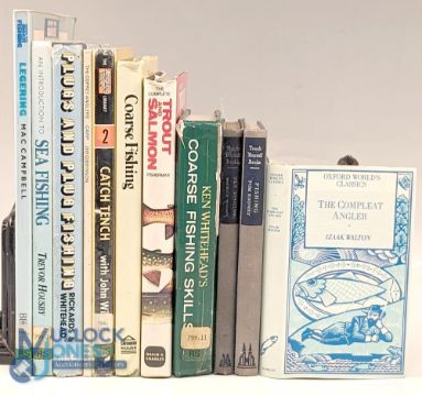 Selection of Fishing Books: to include the Fisherman's Guide to Coarse Fishing 1983, The Compleat Angler Oxford Worlds Classics, An Introduction to Sea Trout T Housby 1992 ex lib, Ken Whiteheads Coarse Fishing Skills Ex Lib 1992, Catch Tench John Wilson ex lib 1991, Teach Yourself Fishing Tom Rodway, Teach Yourself Fly Fishing Maurice Wiggin 1960, Carp Jim Gibbinson Plugs, and Plug Fishing Barrie Rickards 1976, Ledgering ex library (11)