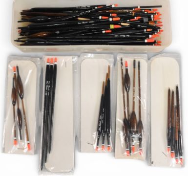 Good collection of Ivan Marks (World Champion) floats, comprising stick, wire stem, wagglers and Zoomers, the majority red painted tops, many appear unused, another small fortune here.