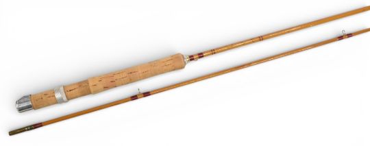 Fine Constable of Bromley “The Wallop Brook” split cane brook trout fly offset rod No 373, 6ft 9” (butt 29”, tip 52”), 2pc, alloy sliding reel fitting and collars, red agate butt ring, cloth bag. Very light use
