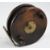 Early Brailsford style Nottingham brass star back and wooden centrepin reel 4” dia’ with sliding rectangular buttons for quick release spool and optional check, filed smooth brass foot, nice example overall