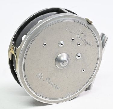Hardy Bros “The Princess” alloy trout fly reel, 3 ½” ventilated spool, 2 screw latch, black handle, milled rim tensioner, constant check, ‘U’ shaped alloy line guide and smooth foot, polished finish and MZC. Runs well