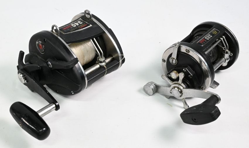 2x Penn multiplier reels to include a 340 GTI in graphite construction, large power handle, together with a 320 GTI with large power handle, in black and chromed finish – both with signs of use, appear in working order
