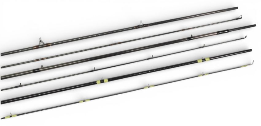 Fine Aiken Superflex 10’ 2 piece, carbon trout fly rod, Refurbished by Foxtons, #7/8/9, lacking butt cap otherwise good, a Daiwa CF98 trout fly rod, 9’6”, 2 piece, #6/7, and a vintage Shakespeare Wonderod, made in USA, 8’ 2 piece spiral graphite fly rod, green whipped, little used. (3)