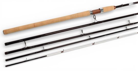Fine J W Young carbon travel barbel rod YTB 1200, 12ft 5pc with spare tip, 24” handle with down locking reel seat, lined stand off rings, zip top Cordura tube. Looks unused