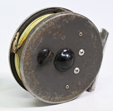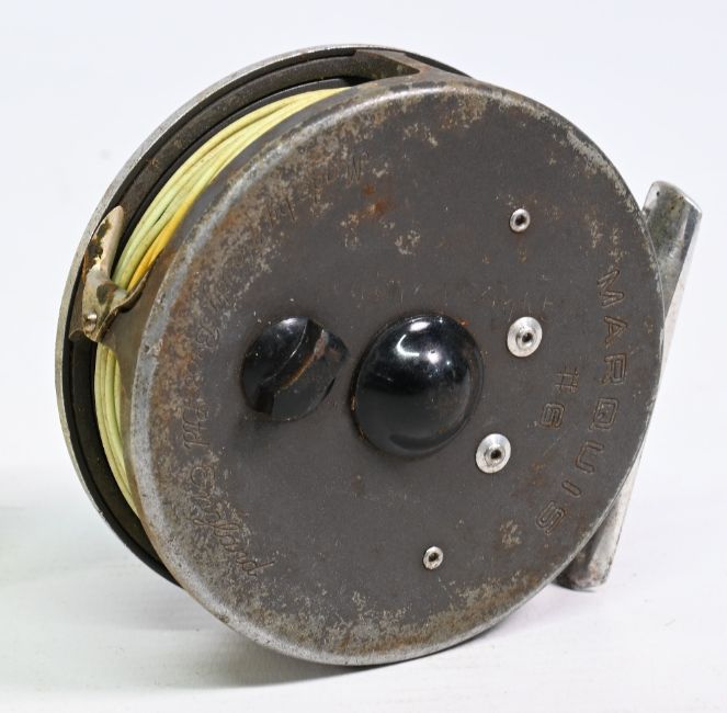 Hardy Bros Marquis #6 alloy trout fly reel smooth alloy foot, rear drag adjuster, quick release spool, line guide, black handle, signs of use apparent, working order