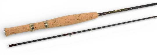 Fine Sharpe Scottie Brand hand built carbon brook trout fly rod 6ft 6” 2pc, line 4/5#, alloy sliding reel fittings on palm swell handle, lined butt ring, cloth bag. Very light use