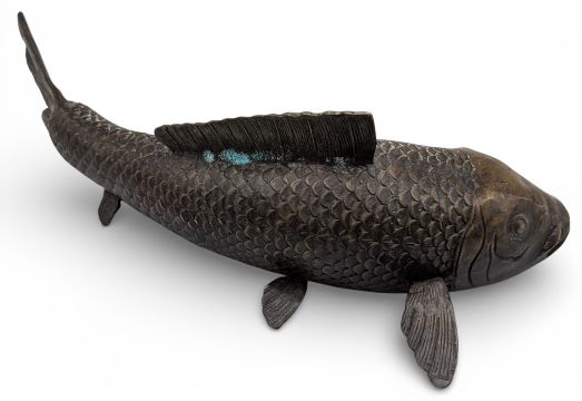 Bronze Japanese Koi Carp Sculpture, with makers mark to base, 28cm long
