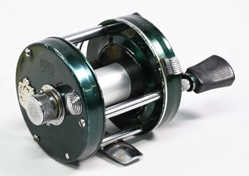 Abu Ambassadeur 5000D green multiplier reel seat No 741000, twin handles, star drag, on/off check, spindle tensioner, good free spool, cloth pouch, runs well