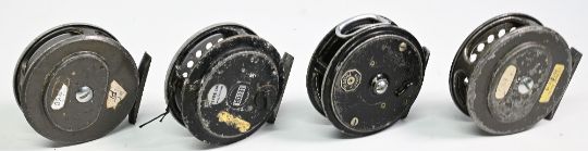 2x Leeda Intrepid Rimfly regular fly reels, plus one spare spool, an older grey finish Rimfly with grey spool, plus an Allcock Marvel 3 ½” reel, by JW Young, central catch faulty. (4)