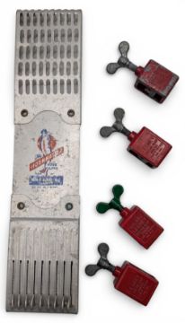 4x Vintage Lesney Milbro Bread Bait Presses, plus a Hookmaster tool clip by Markad Canada