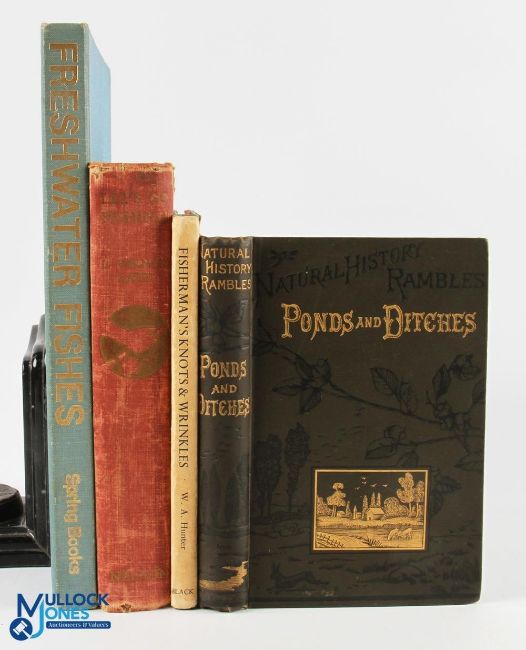 4x period Fishing books, to include: 1880 Natural History Rambles Ponds and Ditches Cooke M C, with decorative covers and spine, Fisherman's Knots, and Wrinkles W A Hunter 1961, Let's Go Fishing Vernon Bates 1940, Freshwater Fishes Juraj Holcik 1970 (4)