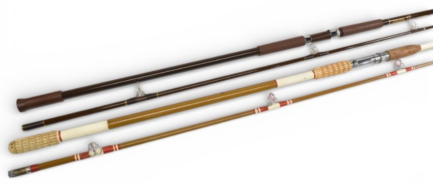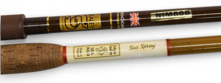 Edgar Sealey Nimrod 12’ 2-piece beach caster, moulded handle grips, and an Edgar Sealey Seaspray, (short top), lined guides and metal ferrule, both in MOBs. (2)
