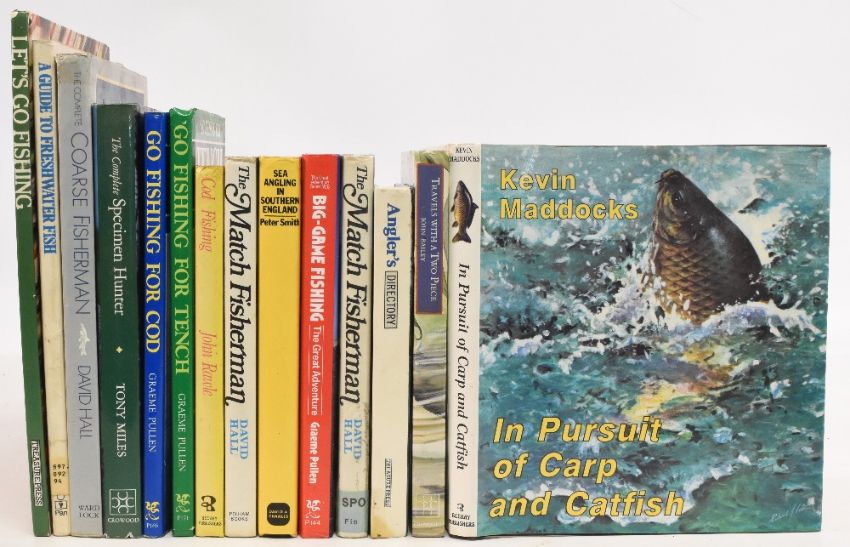 Fishing Books to include In Pursuit of Carp and Catfish 1986 Kevin Maddocks, Travels with a Two Piece 1985 John Bailey The Complete Specimen Hunter 1989 Tony Miles, together with eleven other fishing books (14) in generally very good-good condition