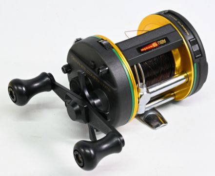 ABU Garcia Ambassadeur 6500 GR multiplier reel foot stamped 8518687, graphite components, twin handed, star drag, appears in good overall condition with maker’s card box
