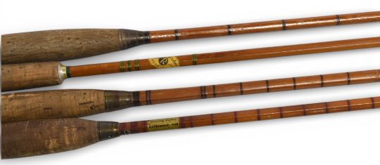 A collection for the restorers of split cane vintage trout fly rods. All need attention but are restorable: 1x Millward 9ft 3pc, spare tip. 1x Rudge & Son 7ft 6” approx 2pc. 1x Millward 8ft 3pc, spare tip. 1x unnamed 8ft 2pc. (4)