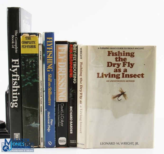 Flyfishing Books, to include: Flyfishing on Stillwater Peter Mackenzie-Philps 1986, Fly Dressing David J Collyer 1975, Dry Fly Trouting Richard Barder 1976, Fishing the Dry Fly as A Living Insect Leonard M Wright 1974, Fifty Popular Flies Tom Stewart 1967 The Complete Fly Fisher C F Walker 1963, The Complete Book of Fly Fishing 1991