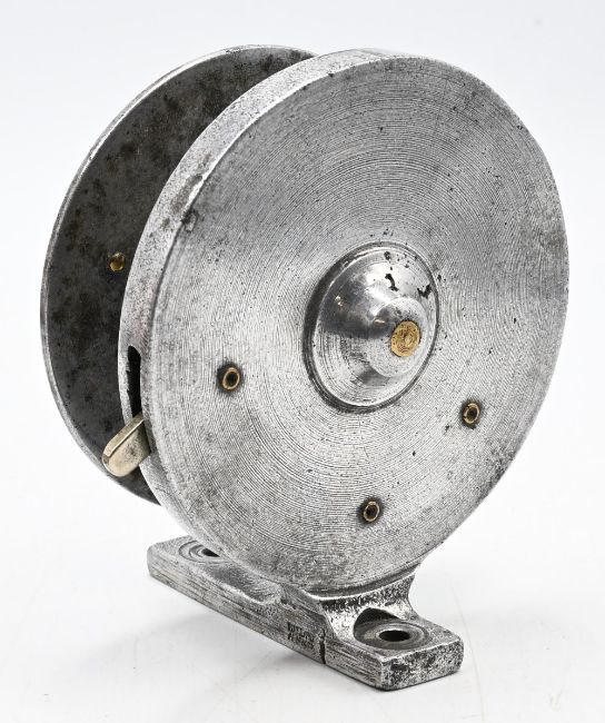 Hardy stamped 3 ½” longstone pattern reel with 3 ¼” spool dia, optional rim lever, central screwing nut, c1930s
