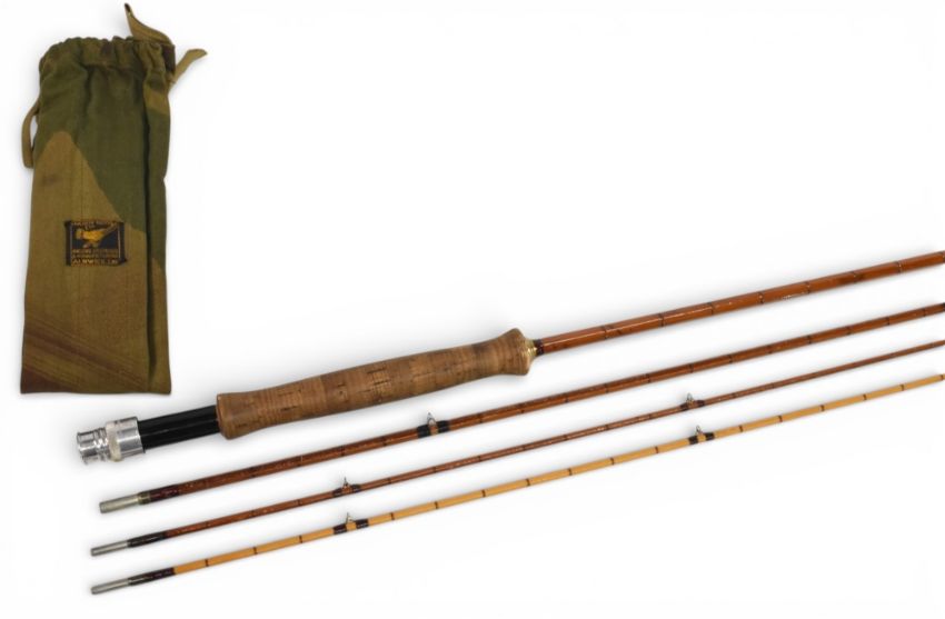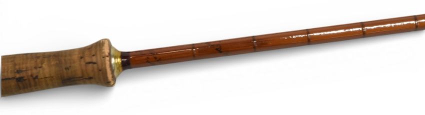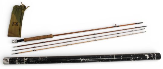 Hardy Alnwick “The No 2 Deluxe” Palakona split cane trout fly rod E63856, 9ft 3pc with spare tip, alloy uplocking reel seat and collar, agate butt/tip rings, camo MCB with Hardy trademark Rod in Hand, and Hardy push top alloy tube (some delamination to middle section)