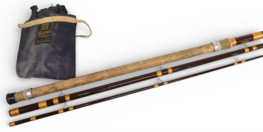 Hardy Matchmaker 14’ 3 piece hollow glass match rod, orange whipped guides, back weighted butt, generally good, in MOB