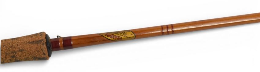 Allcocks Marvel split cane trout fly rod, 9ft 2pc alloy sliding reel fittings, red agate butt/tip rings, cloth bag