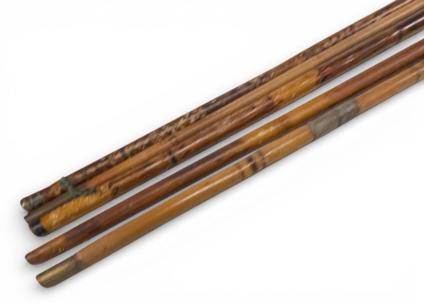 5x Period Bamboo Fishing Handles, and tip holders, one tube marked Hardy Bro for restoration