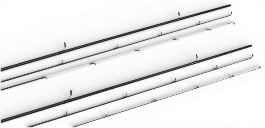 Pair of B J (Bob James), barbel twin tip rod, 12’ 2 piece, with additional quiver tip tops, detachable cork handles, screw reel fittings, both very clean and in MOBs. (2)