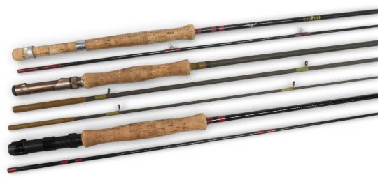 Daiwa Carbon Regal trout rod, 9’ 2 piece fly rod, #5/7, good, a Bruce & Walker 9’6”, 2 piece trout fly rod, model transfer removed, and a Fenwick HMG 10’ 3 piece, trout fly rod with lined guides, over fit ferrules, well used, no bags. (3)