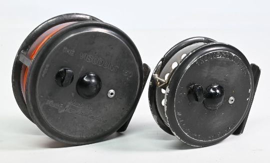 Hardy Viscount 130 alloy trout fly reel with constant check, quick release spool, reversible line guide, together with a Hardy Viscount 150 alloy fly reel with 2x spare spools constant check – signs of use, mixed condition (4)