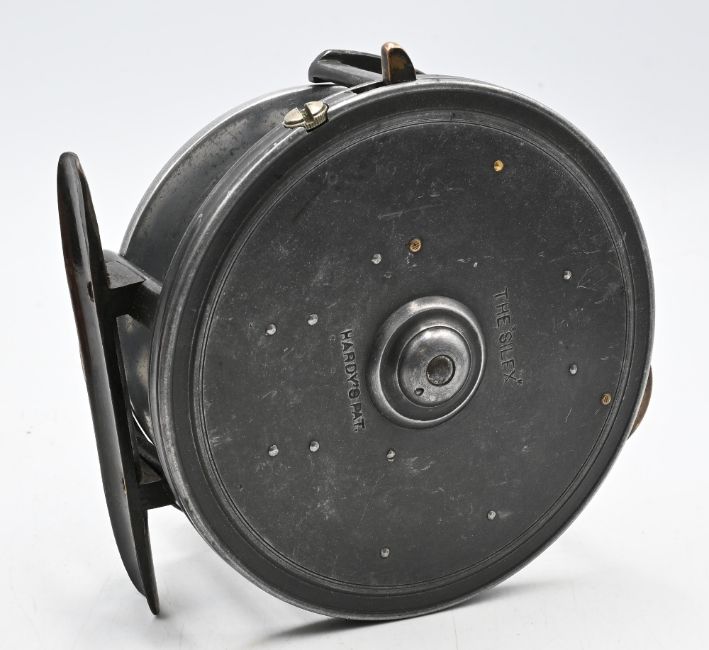 Hardy Bros The Silex 4 ½” alloy casting reel with quarter rim cut out, twin handles on raised cross bar, quick release spool, optional check rim button and brake lever, caged rum core, smooth brass foot, strong constant check