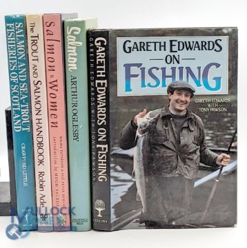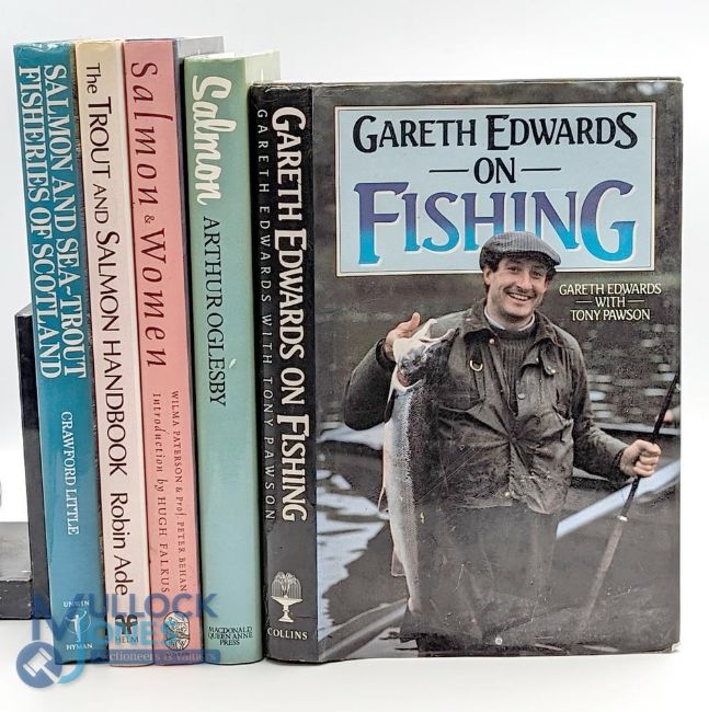 5x Fishing Books: Salmon Arthur Oglesby 1974, The Trout and Salmon Handbook Robin Ade 1989, Salmon & Women Wilma Paterson 1990, Gareth Edwards on fishing 1984, Salmon and Sea Trout Fisheries of Scotland Crawford Little 1990 - all H/b & D/j (5)