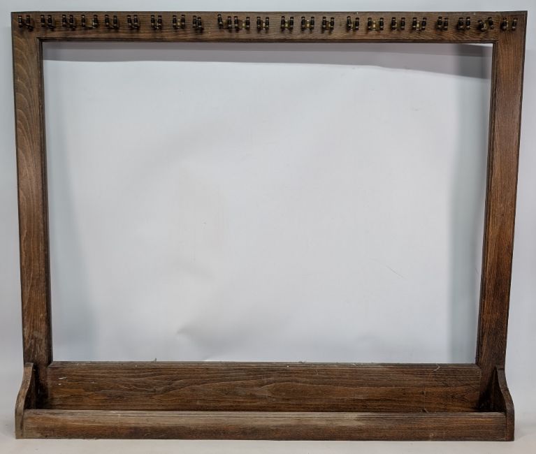 Period Wooden Fishing Rod Display Stand, will hold up to 23 rods, in clips, age related wear - size # 102cm x122cm