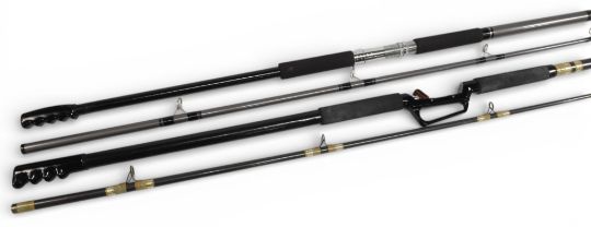Abu Atlantic 414, 11’6”, 2-piece beach caster rod, casting weight 2-6oz, and an Abu Atlantic 484 CS, 11’6”, 2 piece, 2-9oz, beach caster rod, both fine in MOBs. (2)