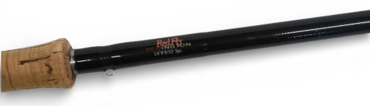 Redington Red Fly carbon salmon fly rod, 14ft 3pc line 9/10, 26” handle, alloy uplocking reel seat and collar, lined stripping rings, MCB and zip top Cordura tube. Light use