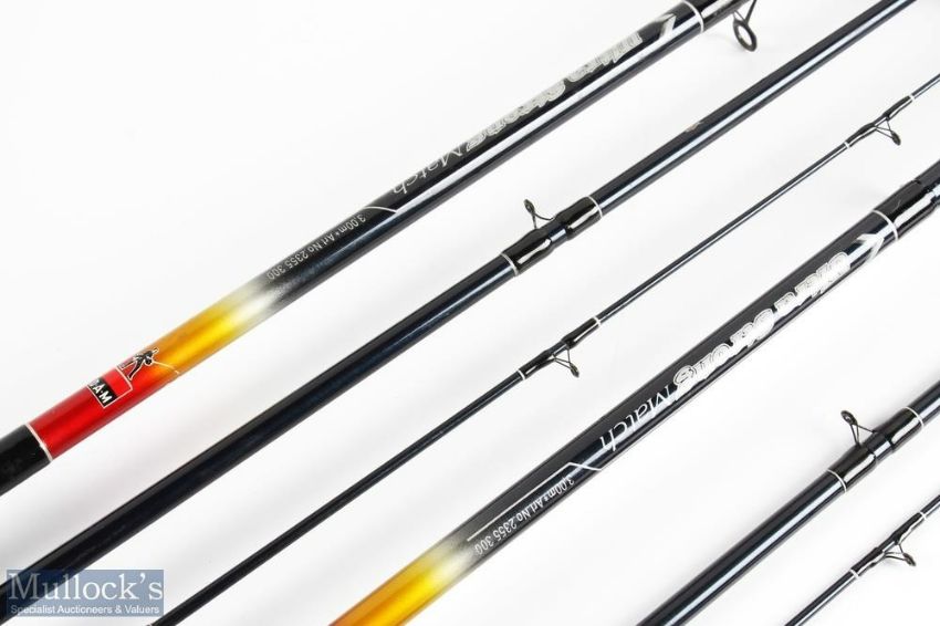 2x DAM Ultra strong match carbon rods, 3m 3pc 24" composite, composite plastic sliding reel fittings, stand off rings, both have light use, in cloth bags (2)