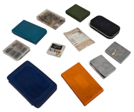 Trout Fly Boxes, boxes and cases to include nymphs, buzzers, dry flies, lures and artificial bate in 8 assorted boxes