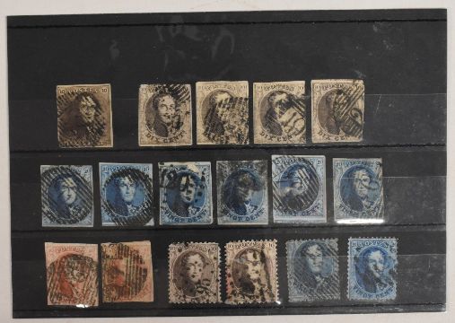BELGIUM COLLECTION OF 17 EARLY POSTAGE STAMPS 1849/50S, portraits of the King values 10 and 20