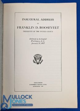 1937 AMERICAN PRESIDENTIAL COLLECTABLES - The Inaugural Address of Franklin Delano Roosevelt, Thirty-Third President of The United States Roosevelt, Franklin D 20th January 1937 booklet, from a very limited edition of 100, comes with The White House Presidential printed paper sent with perishable flowers to a Mrs Howard Snyder, undated, and White House Newspaper Women’s Club Dec 17 1934 “On the firing line” play programmes with Mrs Roosevelt cast as the editor
