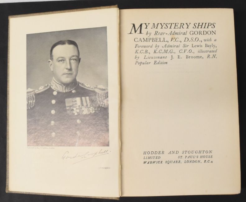 WORLD WAR I - MY MYSTERY SHIPS - by Rear Admiral Gordon Campbell VC 1929 - 300 page book with 28 illustrations, giving interesting detailed account about his being Captain of two “Q SHIPS”, the sinking of two German submarines during World War I. In cloth board cover