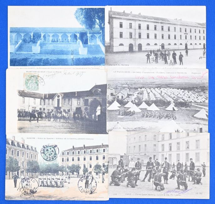FRANCE POSTCARDS (#50) – early 19th century examples showing various examples of Military life, some blank, others used, mixed, mixed condition A/G overall