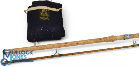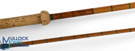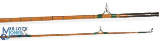 Hardy Alnwick "The No 2 LRH" spinning palakona split cane rod No E60488, 9ft 6" 2pc, 27" mushroom handle, alloy down locking reel fittings, pin lock joint, MCB. Refurbished
