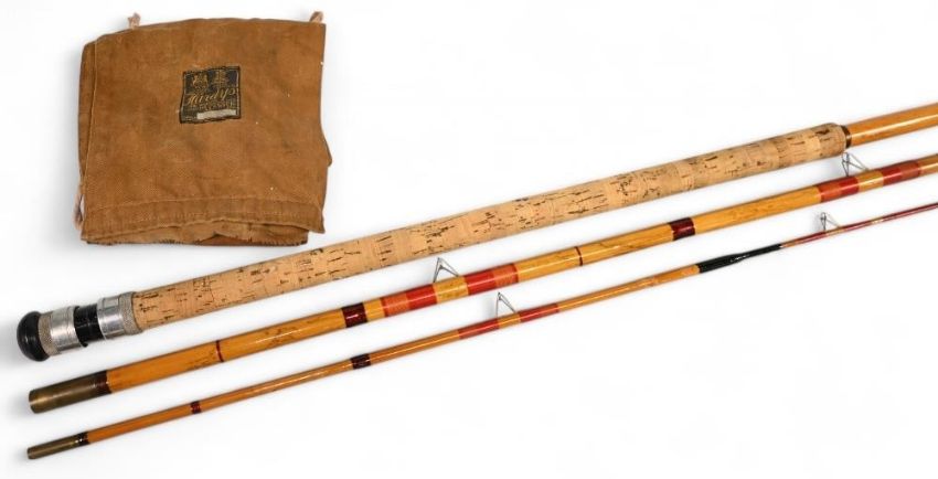 Hardy Alnwick whole cane butt/mid section spliced, and tip section spliced to split cane, float/match rod, 13ft 3pc, (tip 5" short), 26" handle with alloy sliding reel fittings, stand off rings with butt/tip agate lined rings. MCB, very light use