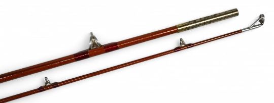 Scarce Hardy Glaskona No H45019 light spinning rod, 8ft 2pc, 21" handle, alloy sliding reel fittings, lined rings, cloth bag, light use