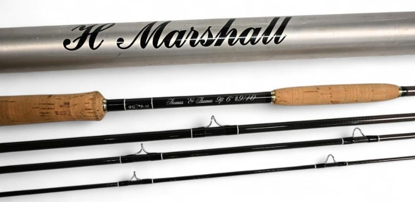 A fine Thomas & Thomas Traveller carbon carp/pike/sea fly rod No 2762, 9ft 6" 4pc line 9/10#, alloy uplocking reel seat and collars, on twin cork handles, MCB and original screw top alloy tube (with previous owner's name stuck on). Hard to find example, very light use