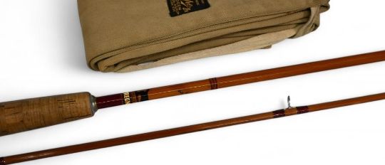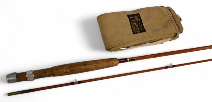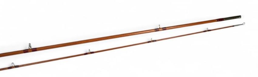 J Sharpes Ltd Aberdeen impregnated split cane "The Featherweight" trout fly rod, 8ft 2pc, line 5/6#, alloy sliding reel fitting and collar, lined butt ring, MCB. Very light use