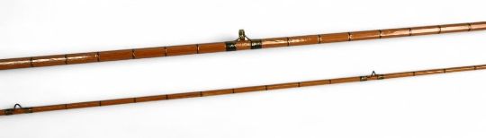 Hardy Alnwick CC de France Palakona split cane trout fly rod No H11445, 8ft 2pc (tip 2" short), alloy sliding reel fitting and collar, clear agate butt/tip rings, MCB. Light use