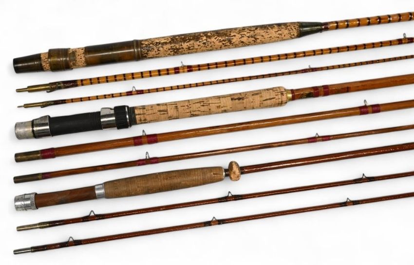 Hardy Alnwick split cane fly rod No 19208, 11ft 3pc, brass reel fittings, agate butt/tip rings, twist lock joints, cloth bag. “A reel antique” Edgar Sealey Octopus brass split cane trout fly rod, 9ft 3" 3pc, down locking reel seat, MCB. J J S Walker Bampton Alnwick split cane trout fly rod No 16873, 8ft 2pc with spare tip 5" short, alloy sliding reel fittings, wood insert with crack, cloth bag. Signs of de-lamination. (3)
