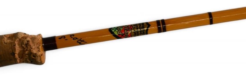 The Trossachs Rod Building Co, Callander "The Scot" split cane brook trout fly rod, 8ft 2pc line 5#, alloy uplocking reel seat, loss of cork to handle top, red agate butt/tip rings, cloth bag