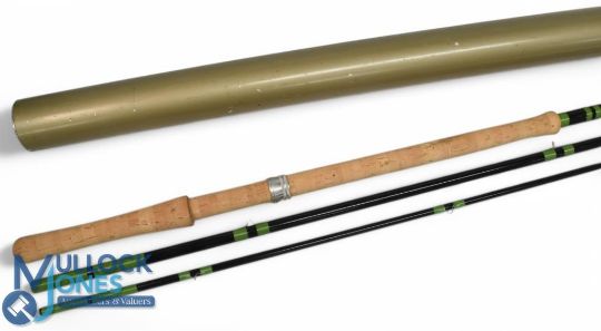 Bruce & Walker hand built carbon salmon fly rod "The Cairngorm" 15ft 3pc line 9/11#, 25" handle with alloy sliding reel fittings, lined stripping rings, in Seymo alloy screw top tube, light use