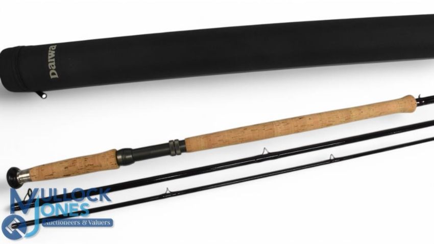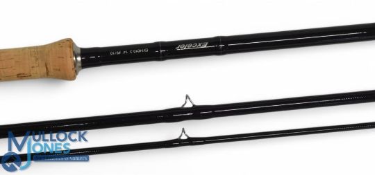 Daiwa Exceler EX 14010-3 carbon salmon fly rod, 18ft 3pc line 9/10#, 26" handle with alloy double down locking reel seat, lined stripping/tip rings, MCB and Cordura tube. Very light use