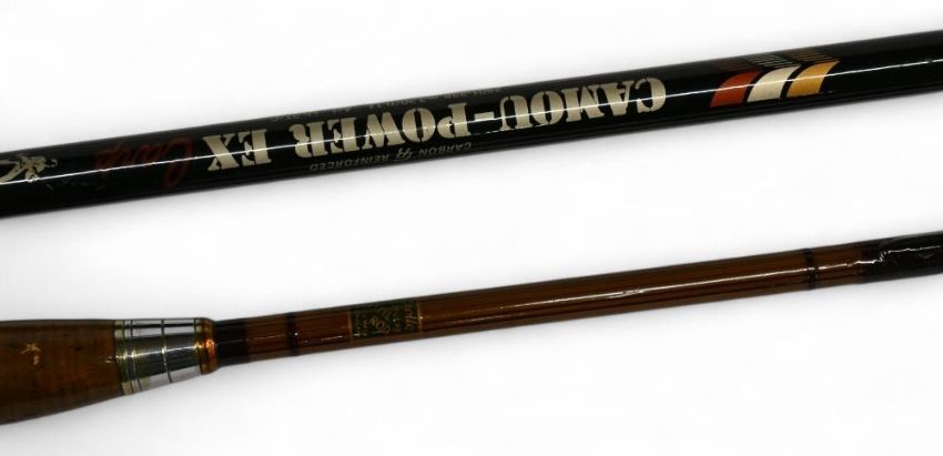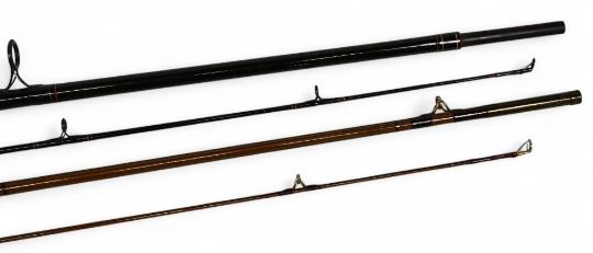 DAM Camou-Power Ex Carp carbon reinforced rod 2501-338, 11ft 2pc, composite grips, uplocking reel seat, lined rings throughout, MCB. Light use. Apollo Tubular Steel carp/pike rod, 10ft 2pc, 30" handle, alloy down locking reel seat. Lined rings, MCB (varnished handle) (2)